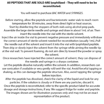 Each vial is sealed for purity and tested for potency and quality. Typical research doses range from 250–500mcg, promoting calmness, sharper thinking, and emotional balance.
